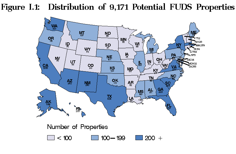 The 9,171 potential FUDS properties are located throughout the 50 states, the District of Columbia, and 6 U.S. territories and possessions. The Corps had determined, however, that most of these 9,171 properties were either ineligible for the program (2,309) or did not require any cleanup (4,070); 116 properties were still being reviewed for eligibility status and the presence of hazards.