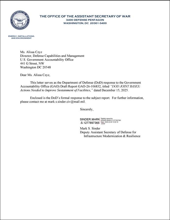 [8]See Department of Defense Instruction 4165.73, Joint Basing Operations (July 28, 2025).