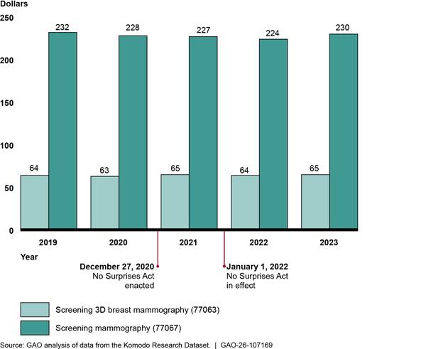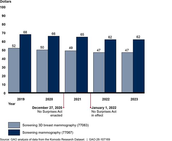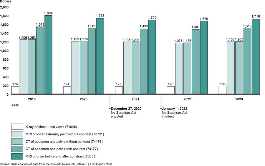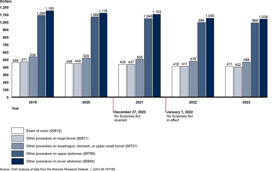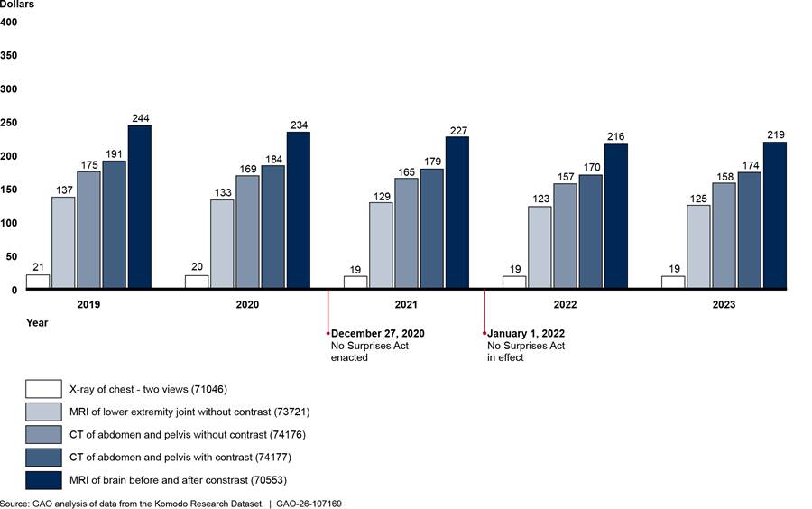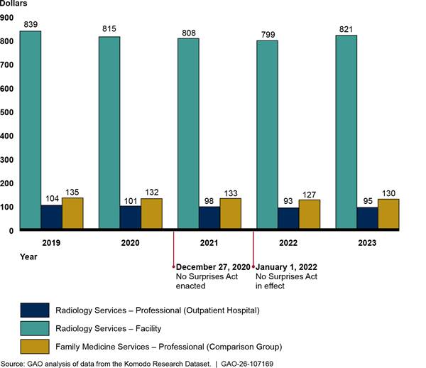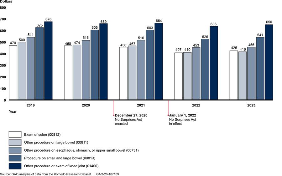 2. changes in payments for selected services before and after the No Surprises Act went into effect.
