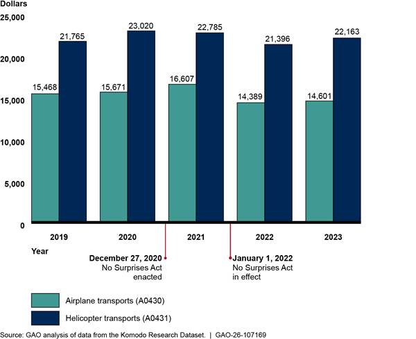 Air Ambulance Claims We analyzed approximately 69,000 professional air ambulance claims from 2019-2023, which represent most (88 percent) of the air ambulance claims in our dataset. Various entities such as privately-owned air ambulance companies, hospitals, or health-systems may provide such services. Source: GAO analysis of data from the Komodo Research Dataset. | GAO‑26‑107169 |