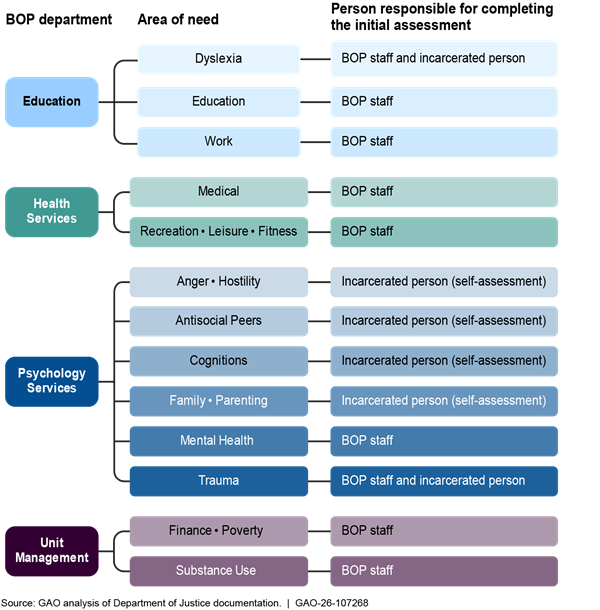Figure 3: Needs Assessed by the Federal Bureau of Prisons (BOP), by Department and Person Responsible for the Initial Assessment