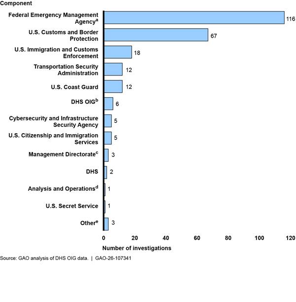[25]We analyzed DHS OIG investigative data from October 1, 2018, through May 31, 2024. These dates reflect the most recent available data at the time of our request, beginning with the start of fiscal year 2019.