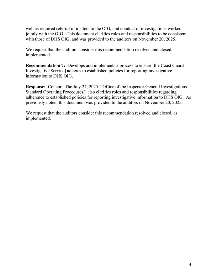 [98]Department of Homeland Security Instruction 077-03-001, Internal Investigative Coordination with the Office of Inspector General (Jan. 17, 2025).