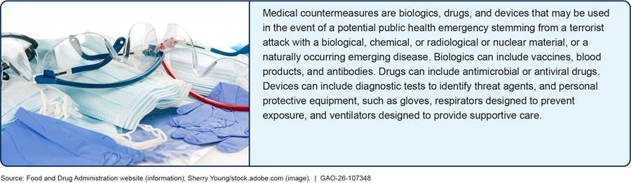 HHS is the federal department most directly involved in leading public health preparedness and response research. This includes research on known and emerging pathogens that could pose a public health threat as well as research that supports the development of medical countermeasures to help mitigate these threats. See figure 1.