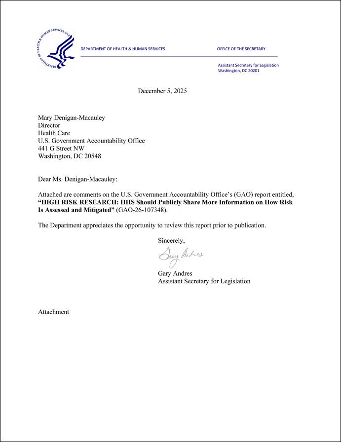 [9]GAO, Public Health Preparedness: HHS Could Improve Oversight of Research Involving Enhanced Potential Pandemic Pathogens, GAO‑23‑105455 (Washington, D.C.: Jan. 18, 2023).