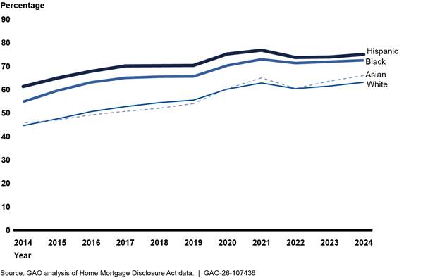 For the first objective, we analyzed Home Mortgage Disclosure Act (HMDA) and Inside Mortgage Finance data to identify trends in nonbank mortgage origination and servicing, respectively, from 2014 to 2024.[8] We also reviewed prior GAO reports, agency reports, and academic literature on these topics.