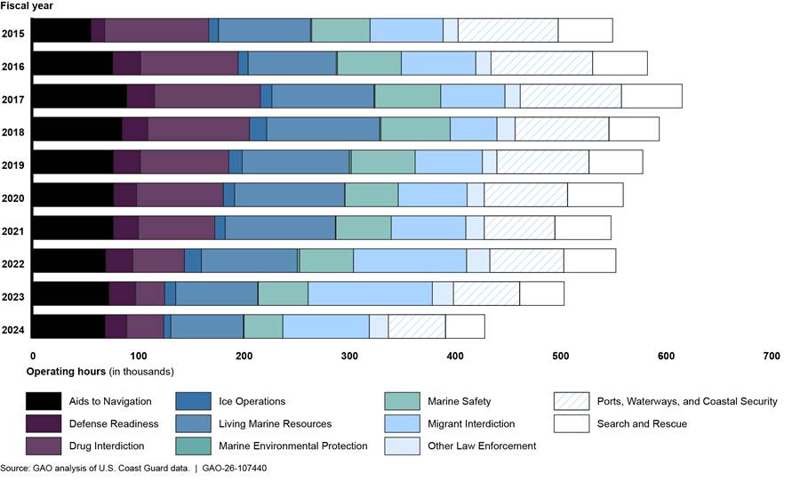 [23]See appendix II for more information on the Coast Guard’s operational hours and estimated operating expenses from fiscal year 2015 through 2024.