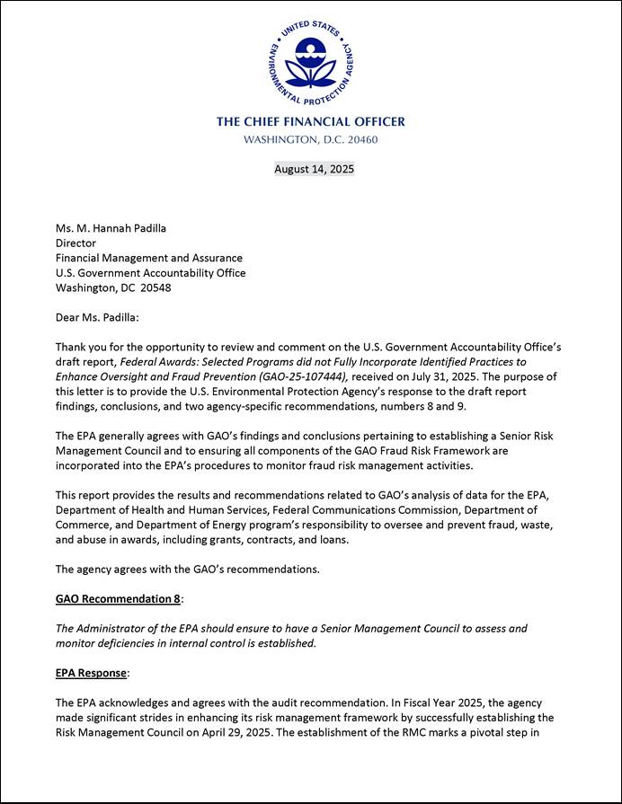 [5]The $227 billion in appropriations includes all amounts that these five agencies in aggregate received from the three statutes for any purpose; thus, this amount is not limited to the appropriations received solely for the five federal award programs that were the subject of our audit work. Further, the $227 billion in appropriations does not reflect any rescissions enacted in July 2025 in relation to federal award programs that EPA administered, including the federal award program reviewed in our work. See Pub. L. No. 119-21, tit. VI, § 60002, 139 Stat. 72, 154 (July 4, 2025).