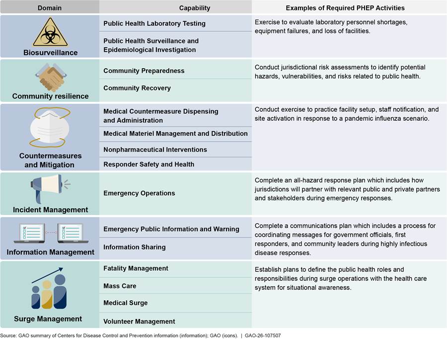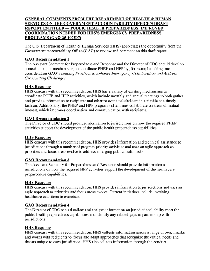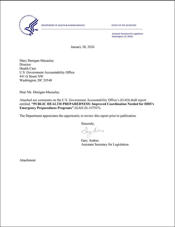 [30]GAO, Public Health Preparedness: Critical Need to Address Deficiencies in HHS’s Leadership and Coordination of Emergencies, GAO‑23‑106829 (Washington, D.C.: May 11, 2023).