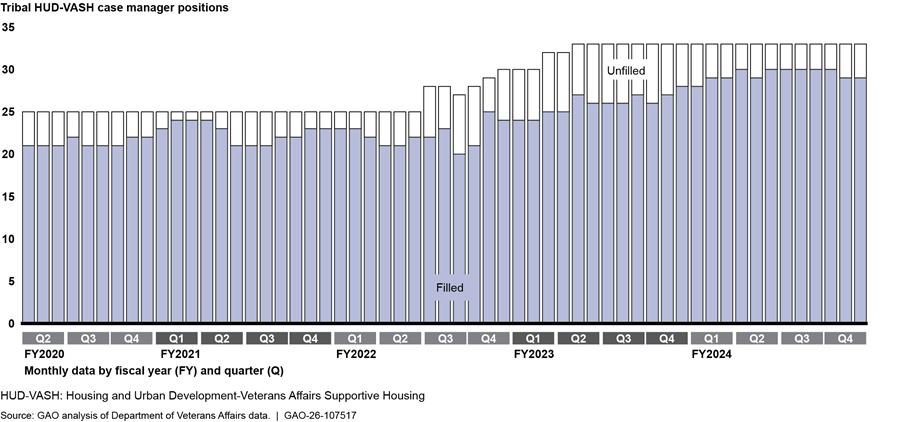 [17]Most HUD-VASH staff are case managers. Of the 3,978 filled HUD-VASH positions at the end of fiscal year 2024, 3,575 (or 90 percent) were case managers.
