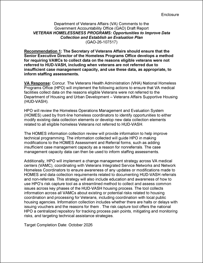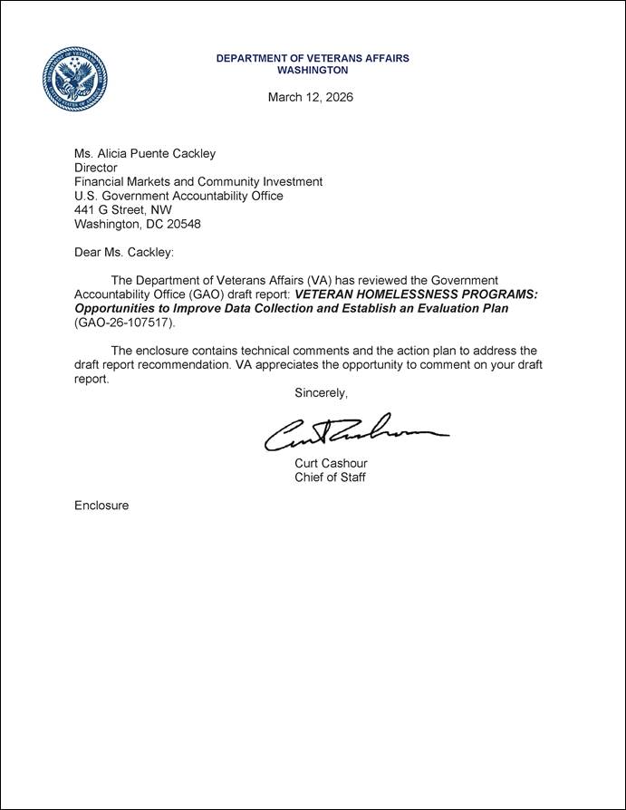 [3]GAO, Homeless Veterans: Opportunities Exist to Strengthen Interagency Collaboration and Performance Measurement Procedures, GAO‑20‑428 (Washington, D.C.: May 14, 2020).