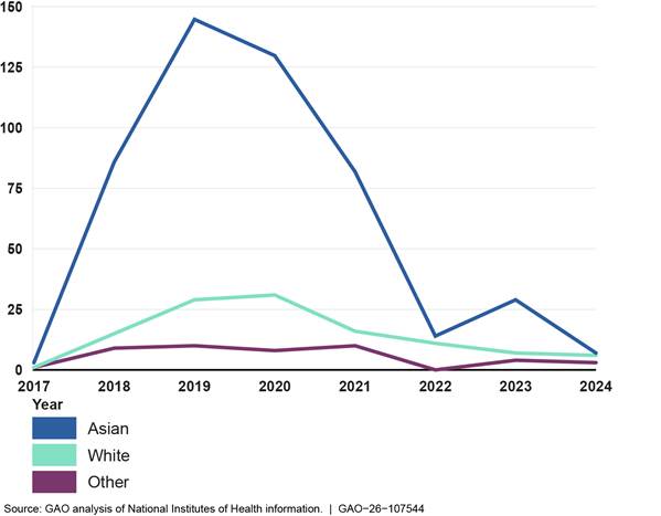 Figure 4: Number of National Institutes of Health Improper Foreign Influence Cases by Self-Identified Race and Allegation Year, 2017-2024