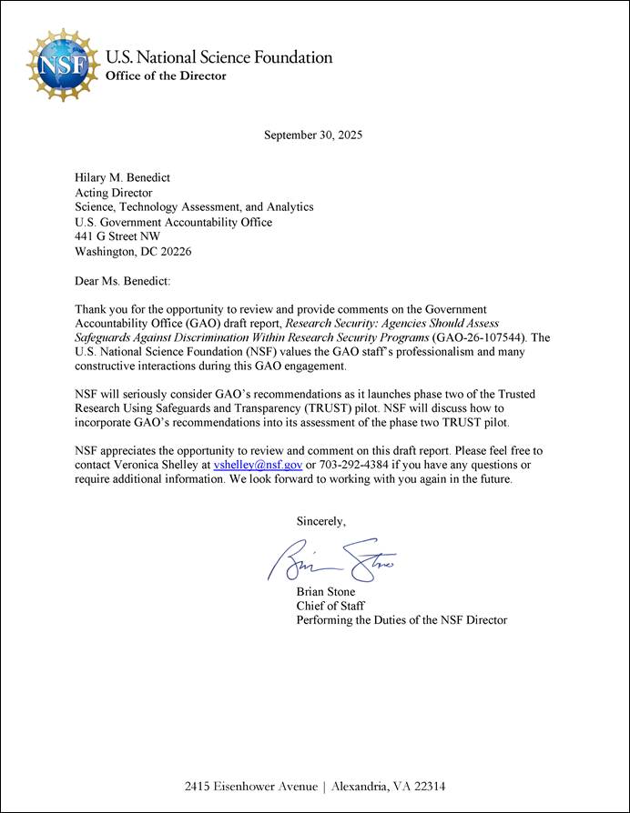 [43]One agency—NSF—contracted for an assessment of its research security pilot process in 2025 but had not completed its own assessment as of January 2026.