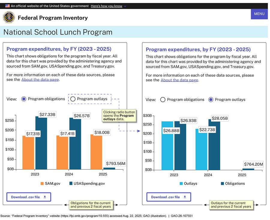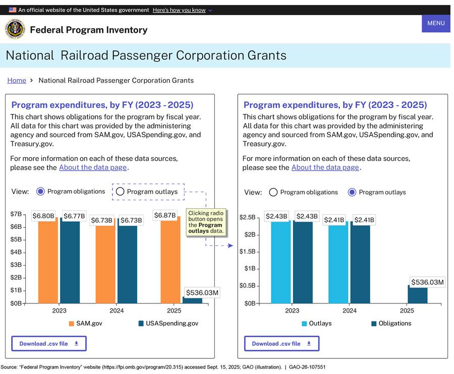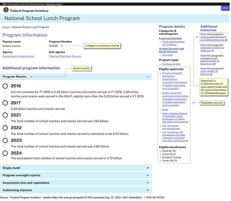 [9]The January 2025 inventory presents the same categories of information—such as program objective and program expenditures—on the webpages for individual programs of the same program type (e.g., all federal financial assistance programs).