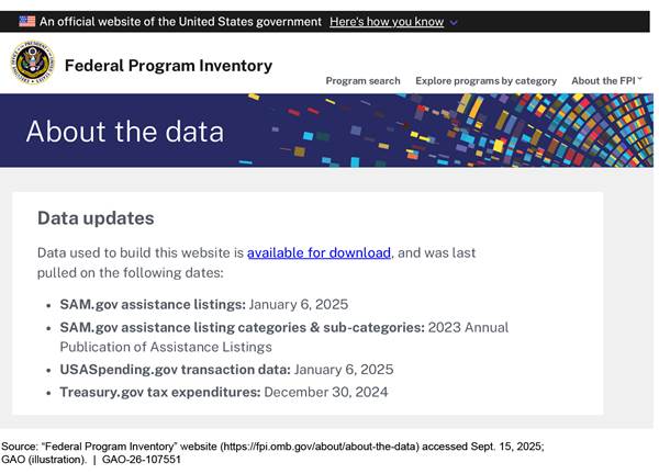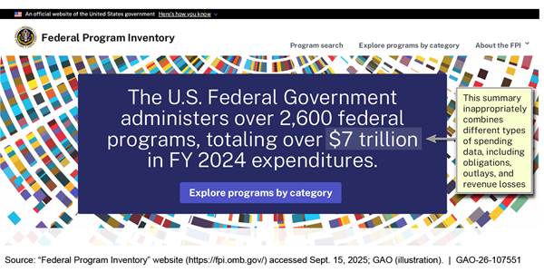 [3]GAO, Federal Programs: OMB Needs a Structure to Govern and a Plan to Develop a Comprehensive Inventory, GAO‑24‑107656 (Washington, D.C.: Sept. 25, 2024).