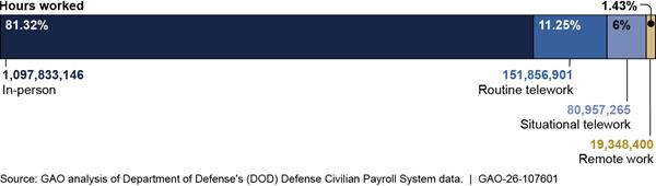 DOD data for pay periods ending in calendar year 2024 shows that most work was conducted in person.