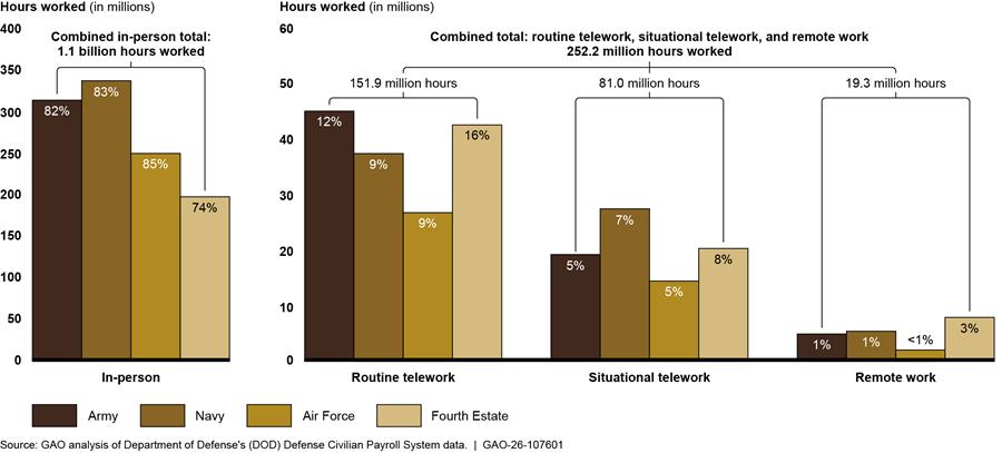 We have previously reported on the use of telework and remote work by federal agencies, including DOD. Since 2003, we have identified key practices federal agencies should implement to help ensure successful telework programs, ranging from technology and training practices to program planning and evaluation.[5] In June 2025, we found that a lack of federal guidance hindered the ability of 24 selected federal agencies to evaluate the effects of remote work. We recommended that the Office of Personnel Management (OPM) issue guidance for agencies to assess benefits and costs when offering remote work positions, including the effects of remote work on the mission and outcomes of the agency, employee recruitment and retention, and operational costs.[6] OPM partially concurred with this recommendation and described plans to implement it.