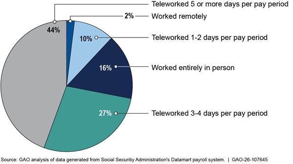 [36]SSA began tracking telework hours in its time and attendance system in January 2024. The agency did not have information about the number of hours its employees teleworked in prior years.