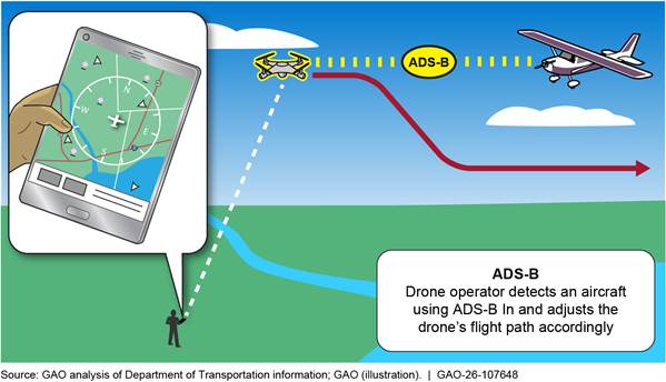 Figure 2: Drone Operators May Use Automatic Dependent Surveillance-Broadcast (ADS-B) In Information to Avoid Manned Aircraft