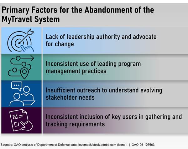 [32]GAO, DOD Business Transformation: Defense Travel System Continues to Face Implementation Challenges, GAO‑06‑18 (Washington, D.C.: Jan. 18, 2006).