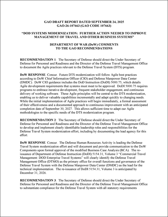 [92]GAO, Defense Management: DOD Challenges with Travel Programs and Business Process Reforms, GAO‑23‑106945 (Washington, D.C.: July 26, 2023).