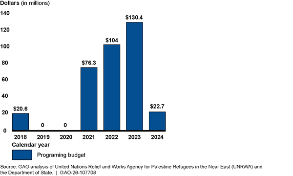 Between 2018 and 2024, the U.S. Department of State (State) provided an estimated $375 million to support the United Nations Relief and Works Agency for Palestine Refugees in the Near East’s (UNRWA) educational activities in the West Bank and Gaza. These funds supported UNRWA’s education system, including teacher salaries, facilities, and maintenance. Because the Palestinian Authority provides textbooks to UNRWA free of charge, no U.S. funds went toward the purchase of textbooks. Until July 2025, the U.S. Agency for International Development (USAID) also supported education-related projects in the West Bank and Gaza, such as providing vocational training handbooks.