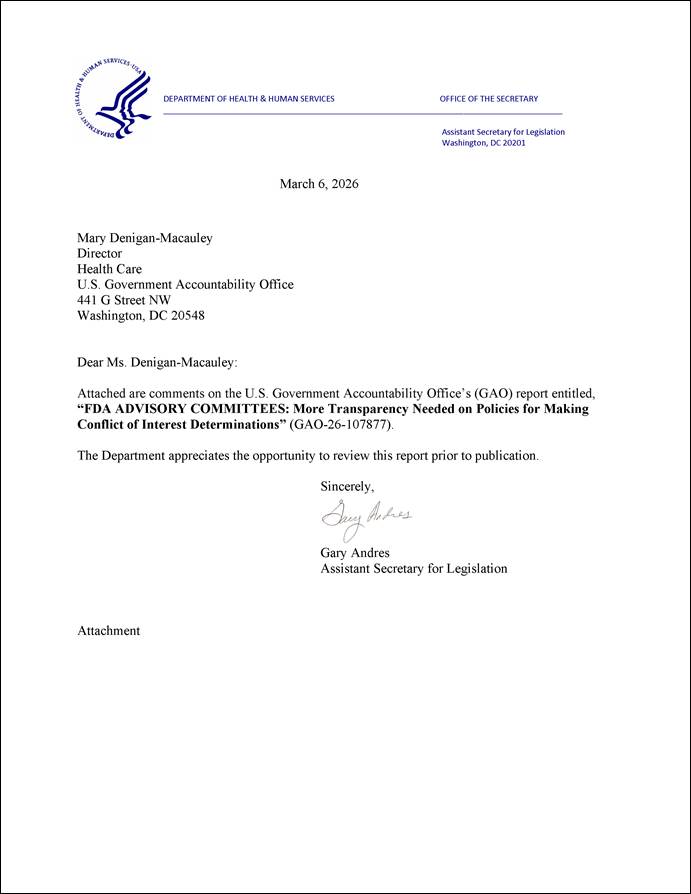 [44]See HHS, FDA, Guidance for the Public, FDA Advisory Committee Members, and FDA Staff: Public Availability of Advisory Committee Members’ Financial Interest Information and Waivers (March 2014).