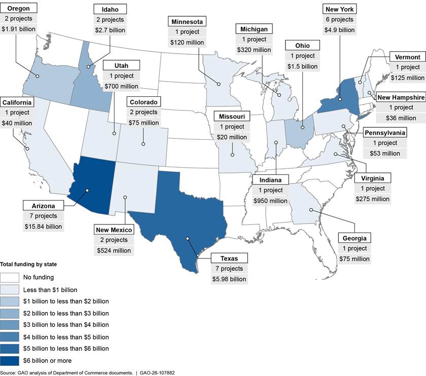 The direct funding awards represent 89 percent of the $34.7 billion in available funds for direct funding.[25] As of July 2025, Commerce officials stated that they are in the process of reviewing additional applications received.