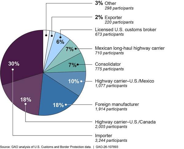 Note: These data are estimates. While GAO determined that these data are sufficiently reliable to report approximate numbers, limitations in these data exist. For more details, see GAO-26-107893. The total number of CTPAT participants is as of August 2025.