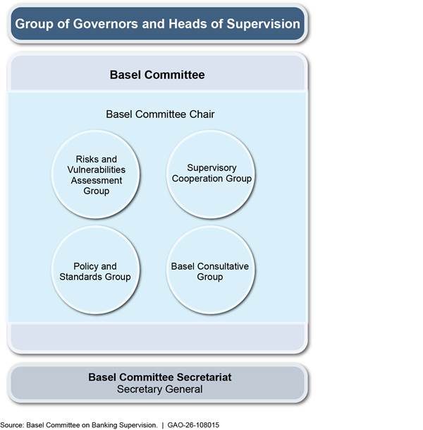 To promote global financial stability, U.S. and banking regulators worldwide negotiate and develop nonbinding minimum capital standards for banks through the Basel Committee on Banking Supervision (Basel Committee or Committee).[1] The Basel Committee’s U.S. members are the Federal Deposit Insurance Corporation (FDIC), Board of Governors of the Federal Reserve System (FRB), Federal Reserve Bank of New York (FRBNY), and Office of the Comptroller of the Currency (OCC).[2] We reported in March 2025 that, according to U.S. members, Basel Committee discussions and related information are governed by confidentiality expectations.[3]