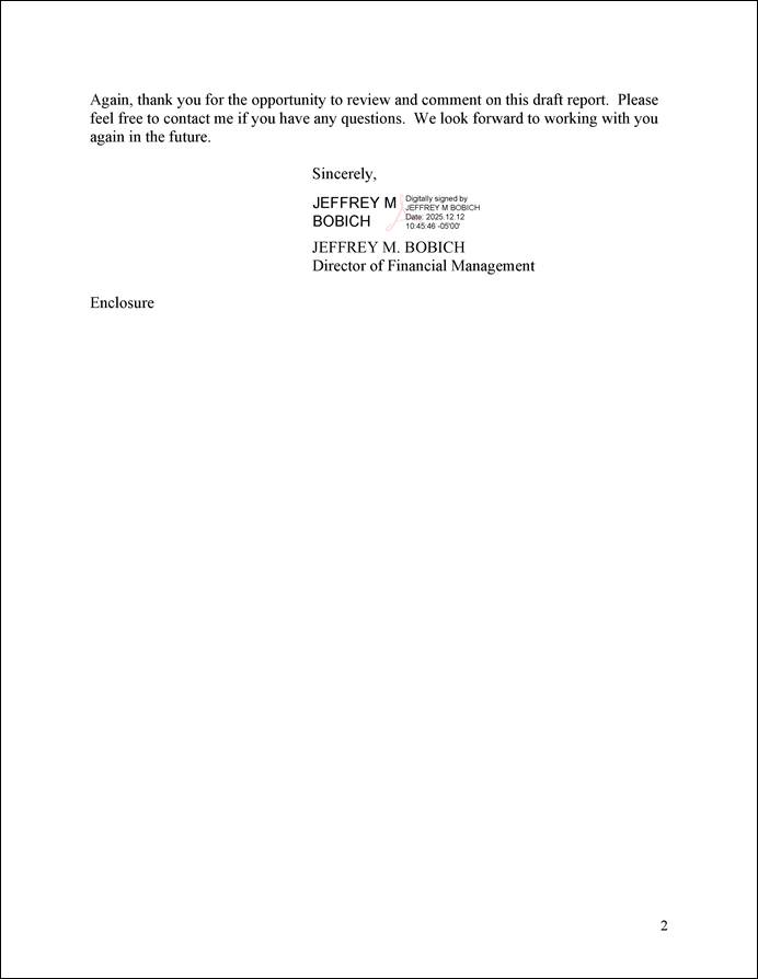 We conducted this performance audit from July 2024 to January 2026 in accordance with generally accepted government auditing standards. Those standards require that we plan and perform the audit to obtain sufficient, appropriate evidence to provide a reasonable basis for our findings and conclusions based on our audit objectives. We believe that the evidence obtained provides a reasonable basis for our findings and conclusions based on our audit objectives.