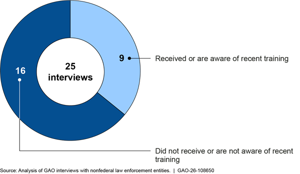 For each urban area, we interviewed a nongeneralizable sample of three to four state or local law enforcement officials, such as those from state police departments, sheriff’s offices, and local police departments. We also interviewed officials from one rural law enforcement entity near each of the four urban areas.[37]