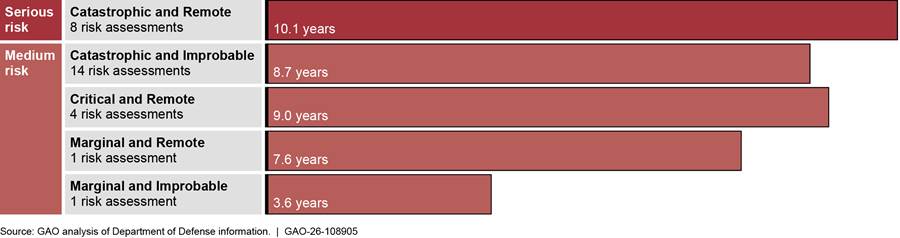 Note: The Department of Defense designates risk assessments as serious and medium based on their assessment of the severity (e.g., catastrophic) and frequency (e.g., remote). The figure does not include six additional risk assessments for general military aviation risks (e.g., bird strikes) that are not specific to the Osprey and have been accepted for the life of the program.